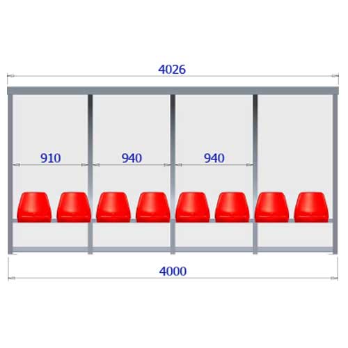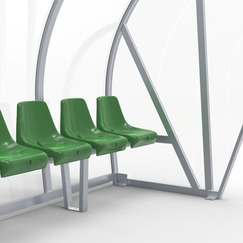 Équipement pour aménagements sportifs extérieurs conjuguant confort et robustesse, cet abri de touche monobloc garantit une installation à la fois durable et fonctionnelle. Sièges baquets, profondeur de l’abri, inclinaison et hauteur de la toiture débordante… le design et la conception de cet abri de touche 8 places ont été pensés et optimisés pour offrir aux joueurs une qualité de confort maximale. Son toit en auvent, limitant l’entrée du vent et de la pluie à l’intérieur de l’abri, maintient les occupants — qu’ils soient assis ou debout — protégés des intempéries. Les parois, entièrement transparentes, laissent passer et diffusent la luminosité naturelle du jour à travers toute la structure. Cet effet d’ouverture, créant une continuité visuelle et sensorielle entre l’intérieur et l’extérieur de l’abri, permet d’obtenir une vision parfaitement dégagée sur l’ensemble du terrain, tout en restant confortablement abrité.