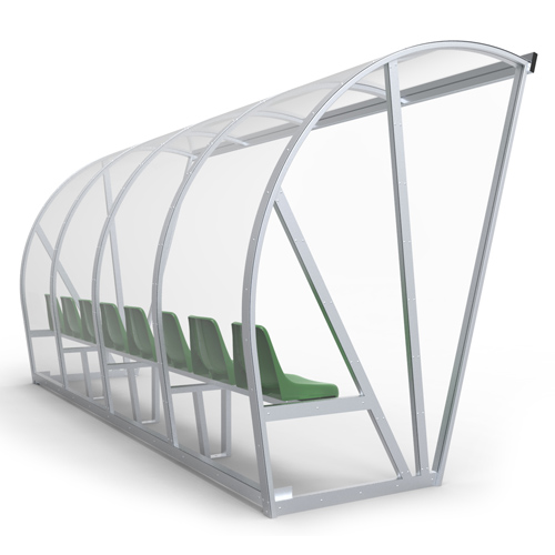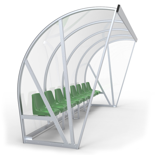 Banc de touche monobloc surmonté d’un toit en auvent, cet abri, pouvant accueillir jusqu’à 8 personnes, a été conçu et optimi..