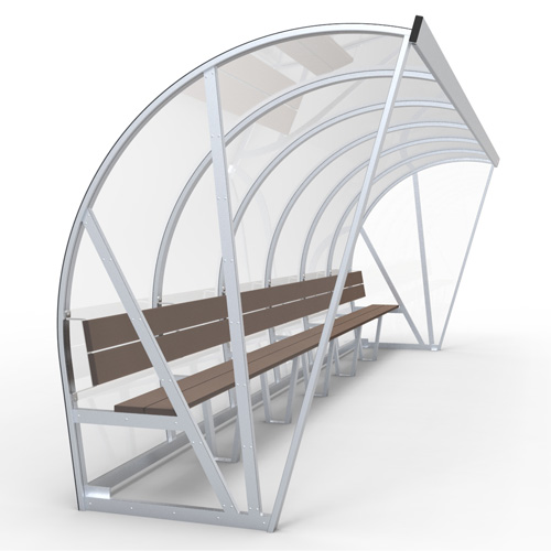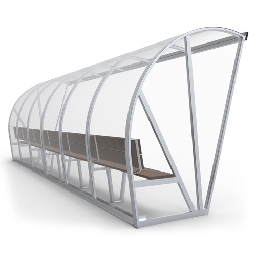 Banc de touche monobloc surmonté d’un toit en auvent, cet abri, pouvant accueillir jusqu’à 10 personnes, a été conçu et optim..