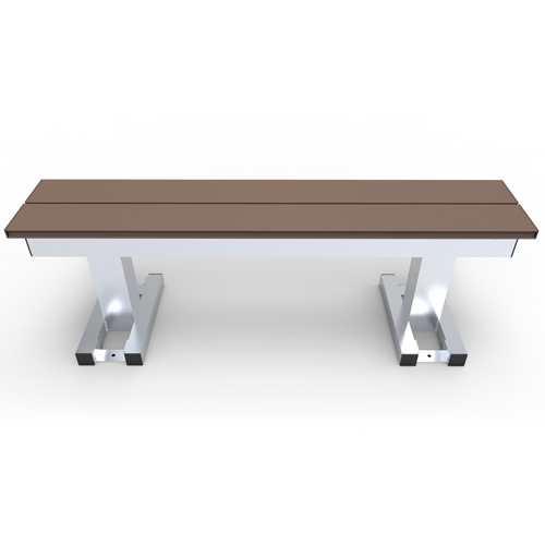 Matériaux : Cadre en aluminium assemblé par soudure. Lames de banc en bois composite