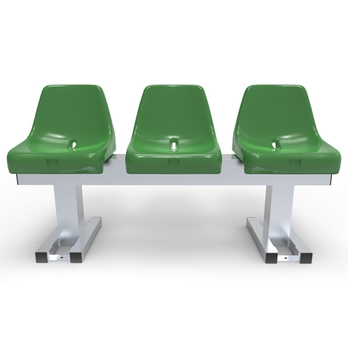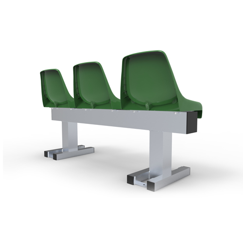 Banc de touche extérieur pour aménagements sportifs, conçu et optimisé pour concilier confort et robustesse. Équipé de 3 sièges baquets, ce banc offre aux utilisateurs une assise stable et confortable, favorisant bien-être, repos et récupération.