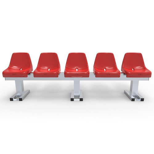 Banc de touche extérieur pour aménagements sportifs, conçu et optimisé pour concilier confort et robustesse. Équipé de 5 sièges baquets, ce banc offre aux utilisateurs une assise stable et confortable, favorisant bien-être, repos et récupération.