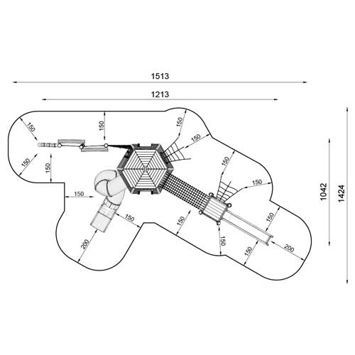 Zone de sécurité (L x l) : 1555 x 832 cm