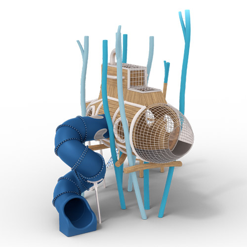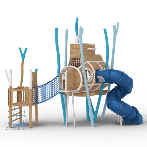 Structure pour aire de jeux sur le thème des fonds marins, faisant la part belle à l’imaginaire et à la créativité, le Sous-marin des aventuriers plonge les enfants dans un océan d’aventures et de découvertes ludiques. Quête de trésors archéologiques au milieu d’épaves englouties par les mers, observation des récifs et de la vie sous-marine, exploration des profondeurs abyssales et de leurs étranges créatures… Univers fascinant baigné de mystères, le monde sous-marin demeure une source d’inspiration inépuisable pour l’imagination des enfants.