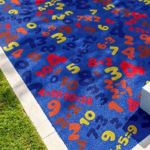 Gazon synthétique pour aires de jeux de la gamme Turftale, sur le thème des chiffres et des calculs élémentaires. Éparpillés de manière aléatoire, tels des fragments d’opérations en attente de solution, les chiffres et symboles mathématiques forment un décor de jeu captivant, suscitant curiosité et réflexion. Reconnaître les nombres de 0 à 10, apprendre à les ordonner, s’amuser à additionner deux chiffres voisins ou réussir à résoudre de petites opérations… ce gazon à thème permet aux enfants d’apprivoiser les bases du calcul de manière drôle et amusante.