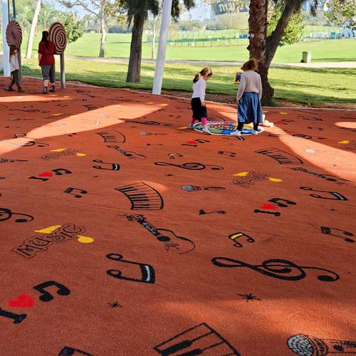 Gazon synthétique pour aires de jeux de la gamme Turftale, sur le thème de la musique. Orné d’instruments de musique, de clés de sol, de notes musicales et autres symboles de partitions… ce gazon artificiel transforme les aménagements ludiques en une véritable scène de concert, où l’imaginaire des enfants s’éveille et se met à chanter au rythme de leurs pas. Propice au jeu de rôle et de simulation, il invite les enfants à se glisser dans la peau de musiciens, de chanteurs ou de chefs d’orchestre. À la fois ludique et éducatif, ce gazon décoratif permet d’enrichir les thématiques des aires de jeux autour de la musique, tout en initiant les enfants au solfège de manière amusante.